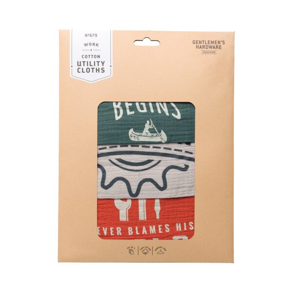 This Utility Cloth Set from Gentlemen's Hardware is the perfect gift for the adventurer who has everything. This set of cloths comes with a pouch that holds all 3 clothes with their unique designs. These square cloths also come with hanging loops to clip onto your carabiners, hang from your handlebars, or just be handy for when you need to wipe the sweat away.